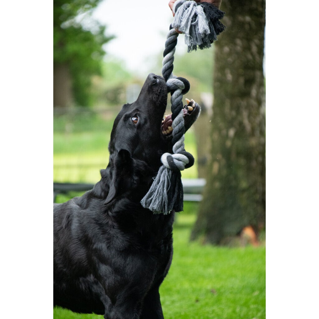 Cette étonnante corde en fil dentaire est fabriquée en coton 100 % naturel, ce qui la rend sûre, durable et respectueuse de l'environnement. Elle est spécialement conçue pour les jeux d'aller chercher et de tirer avec les chiens. Pendant le jeu, la corde à fil dentaire contribue non seulement à améliorer la santé de la bouche de votre chien, mais aussi à nettoyer ses dents et ses gencives. Cela est dû à la technique de tressage spécialement conçue, où seuls des fils entiers sont utilisés, ce qui rend la corde de fil dentaire plus tressée et beaucoup plus résistante que les cordes de fil dentaire ordinaires. En outre, elle est fabriquée à partir de matériaux recyclés, ce qui la rend non seulement bénéfique pour votre chien, mais aussi pour l'environnement.