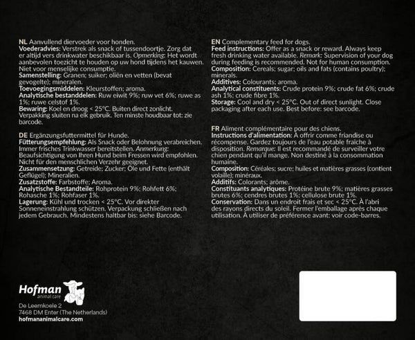 Ce snack pour dresseurs est une friandise molle semi-humide. Cela signifie que ces snacks sont encore légèrement humides et donc extrêmement puissants en termes de goût et d'odeur. Idéal pour récompenser positivement votre chiot ou votre jeune chien pendant l'entraînement, les cours ou l'apprentissage des ordres de base. Le Puppy Mix est spécialement adapté aux besoins des jeunes chiens et constitue la récompense idéale. Cet en-cas de dressage est fabriqué aux Pays-Bas.